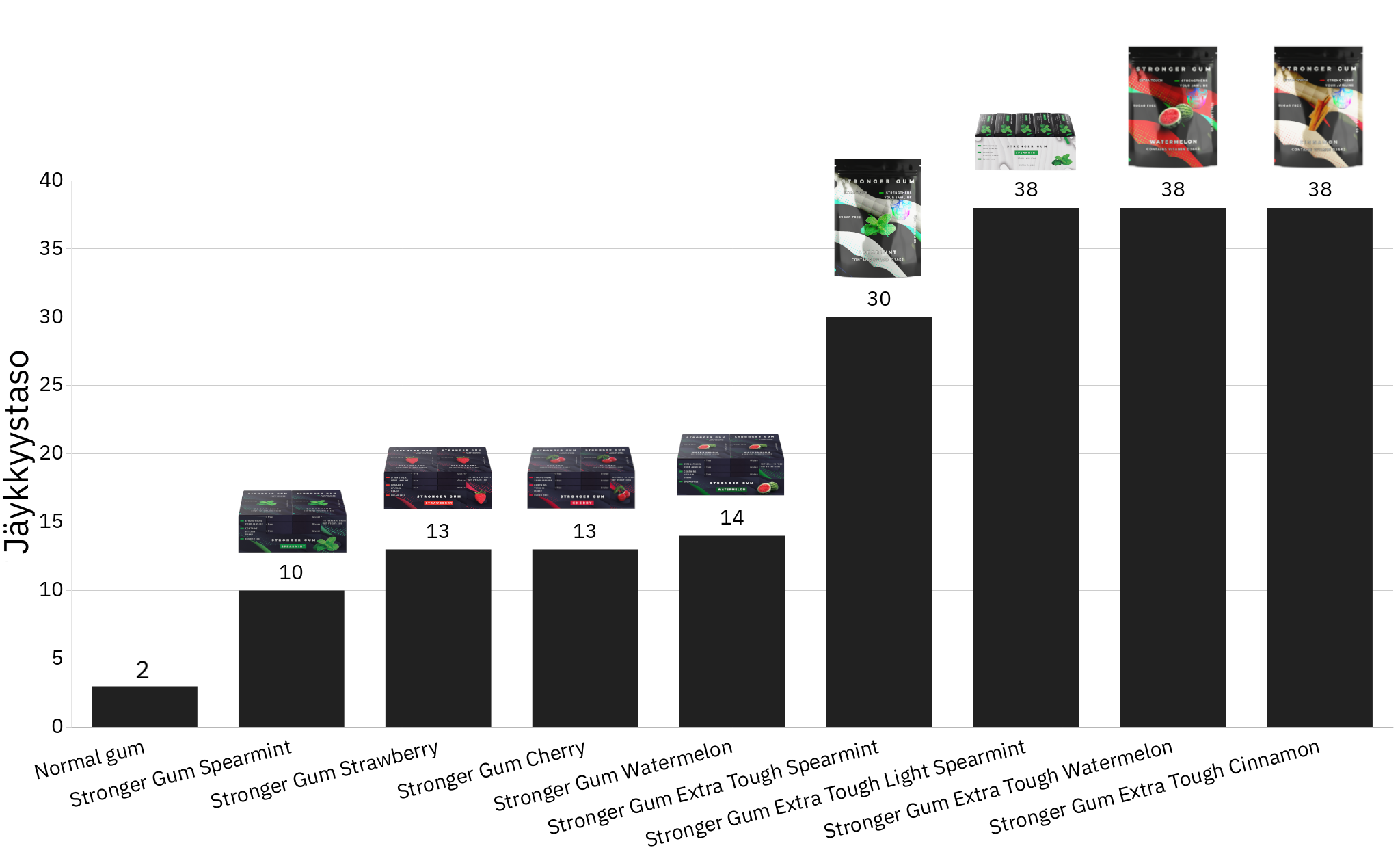 Extra Tough: Miedosti Maustettu Sokeriton, 90 Kappaletta (315g) - Kovaa Purukumia | Erityinen Shore-kovuus leukojen kehitykseen